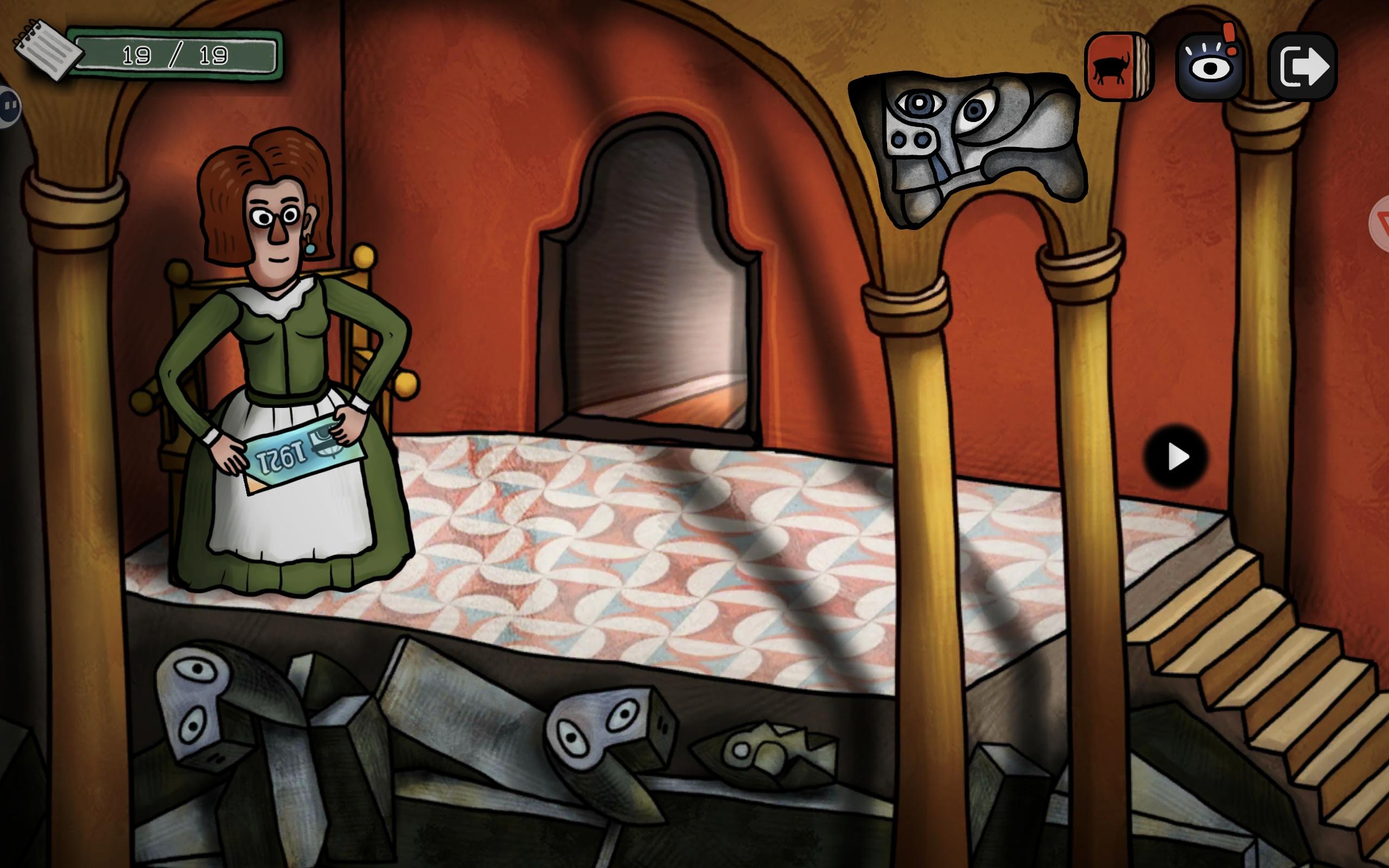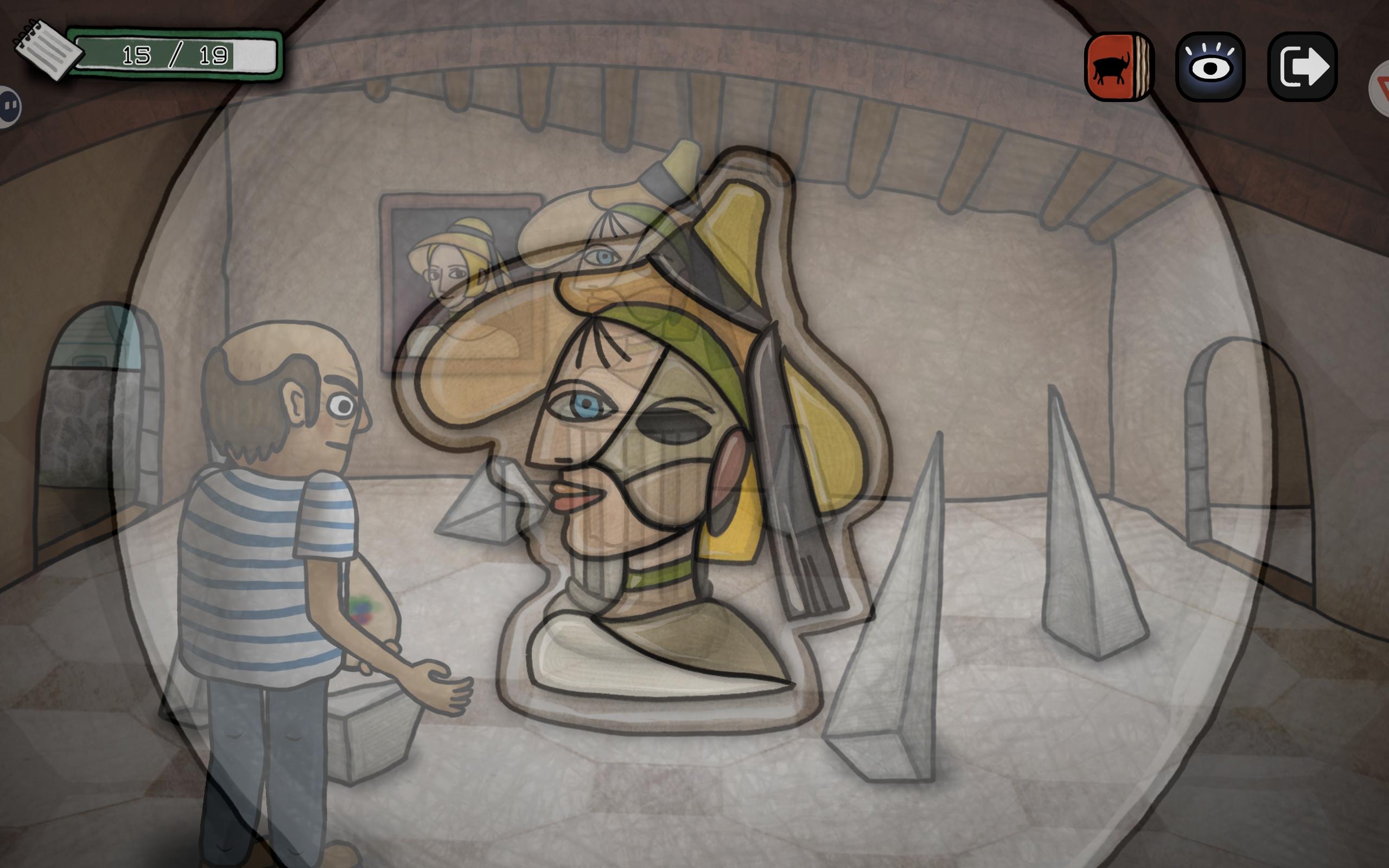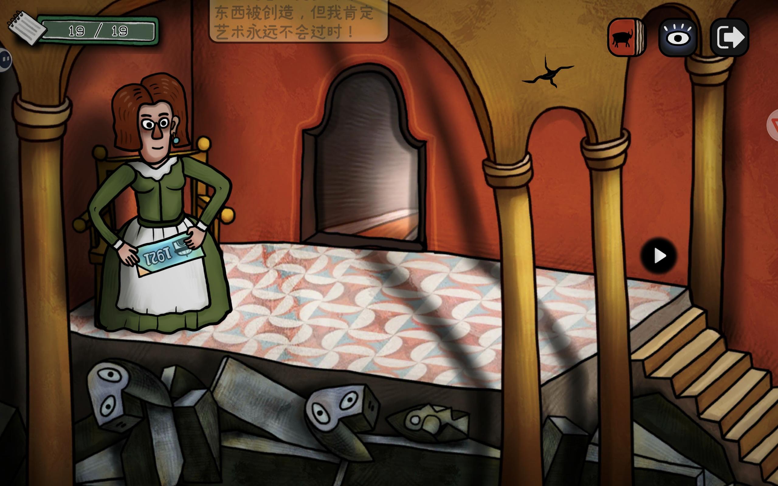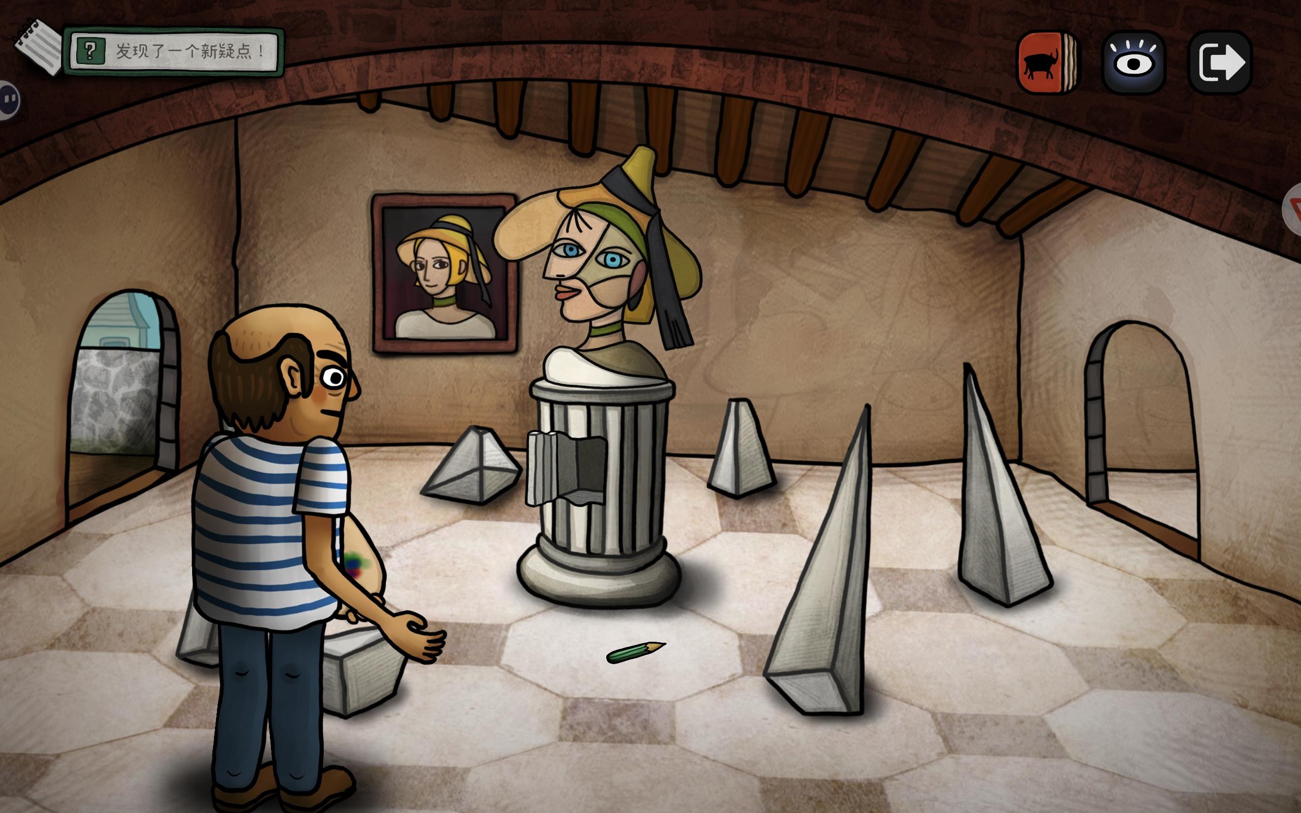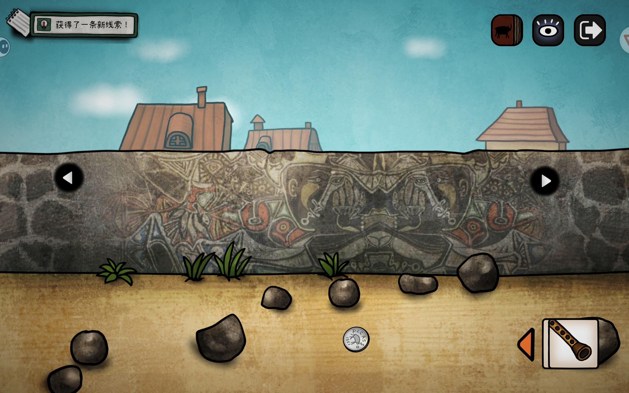 (补充,右上角这个石壁可以点出裂缝,多点几次会出现一个雕塑,解锁成就【立体主义探险家】,我后来才找到)