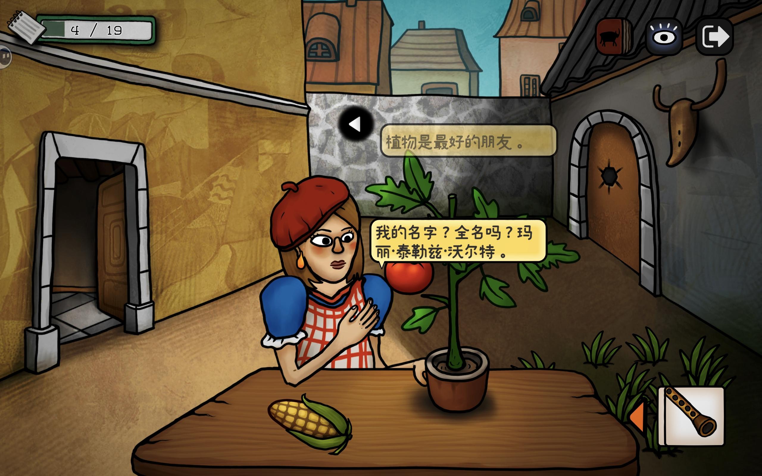 去院子里,点击玛丽身后的小路,再次看到公牛,把蜡笔给它