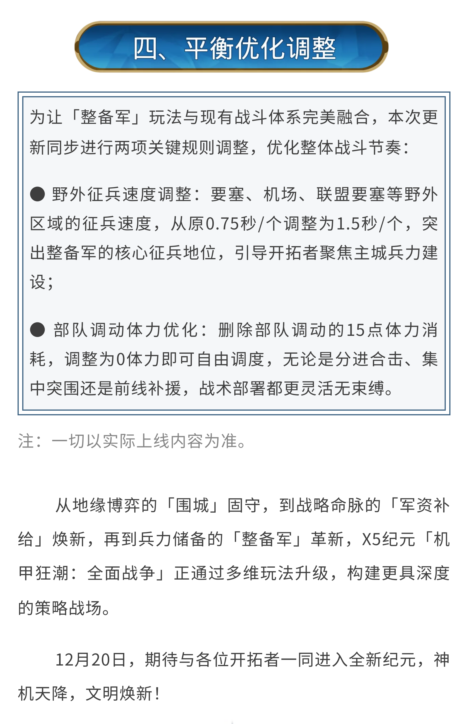 新纪元情报丨「整备军」玩法前瞻:多队列囤粮成兵,新纪元征兵革新!