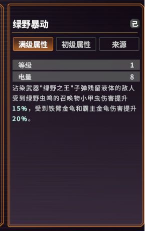 进阶配卡:武器选择绿野之王在2.0版本中更新一张绿野之王的专属执行卡:绿野暴动