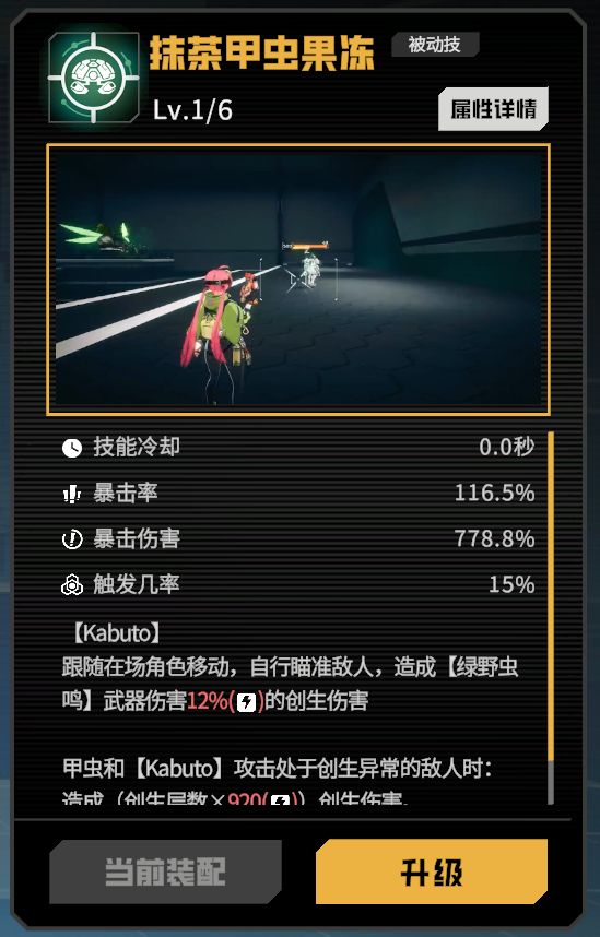无人机随虫妹移动,攻击造成武器伤害的百分比创生伤害,并且大小甲虫攻击了无人机击中的敌人会造成基于敌人创生层数的额外创生伤害