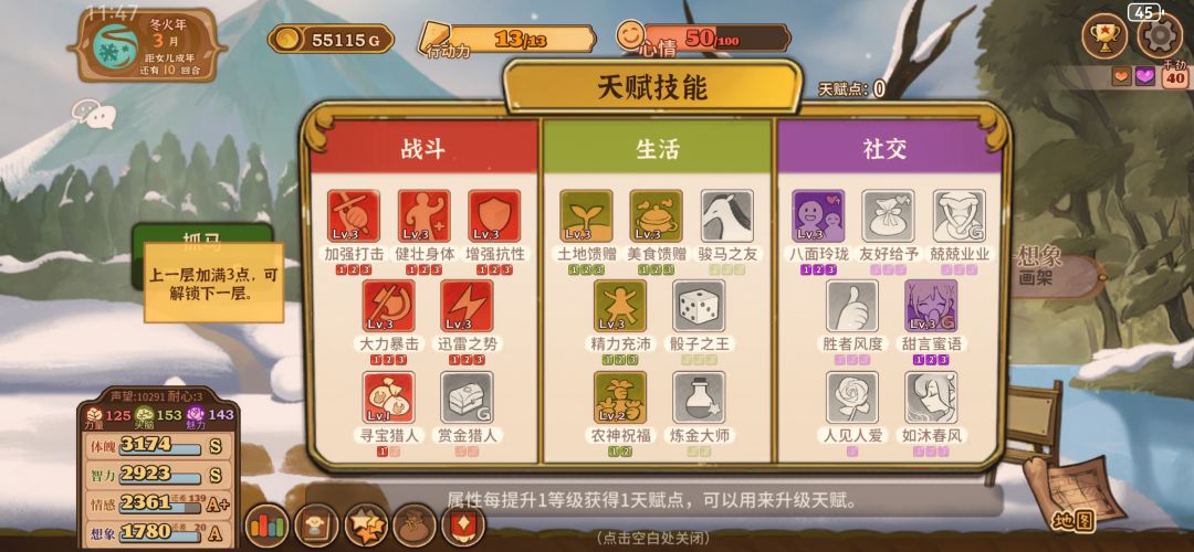 生活技能:土地馈赠(必须)、美食馈赠(推荐)、