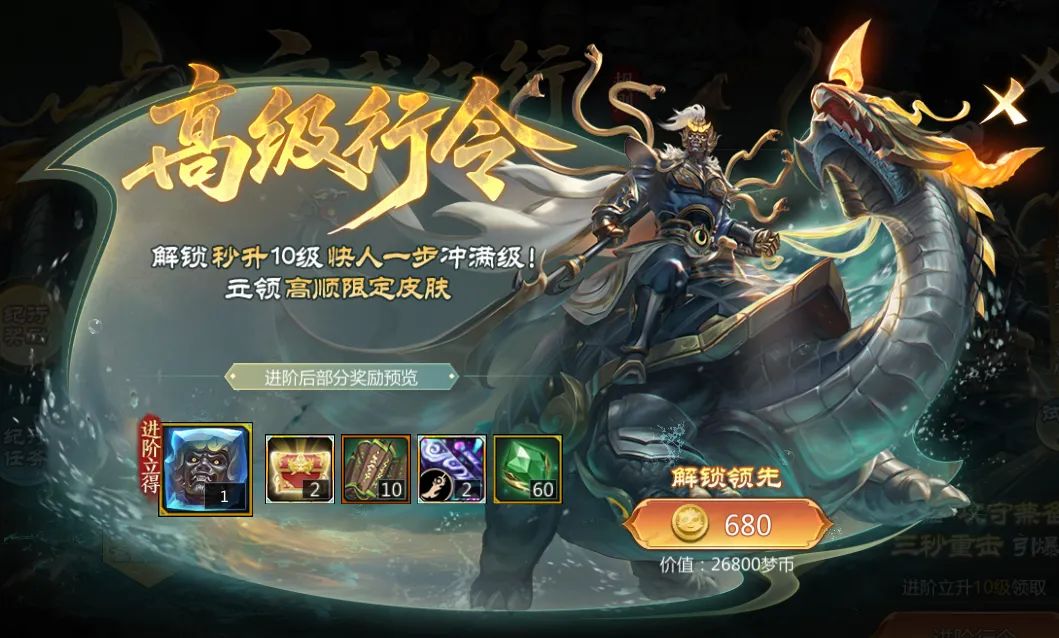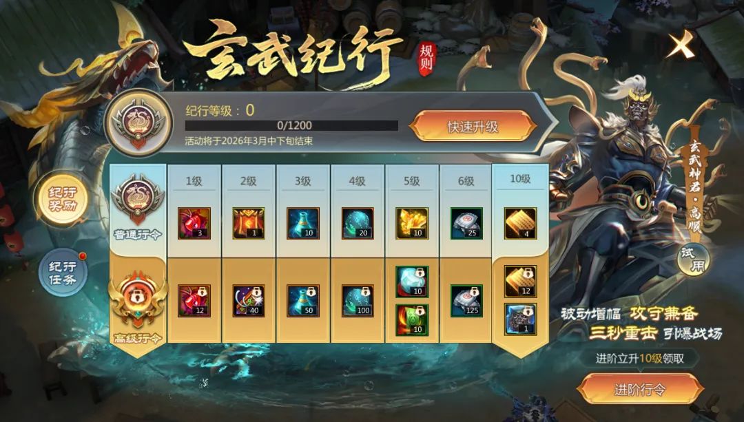 解锁高级行令立升10级,领取高顺*玄武神君全新换装!