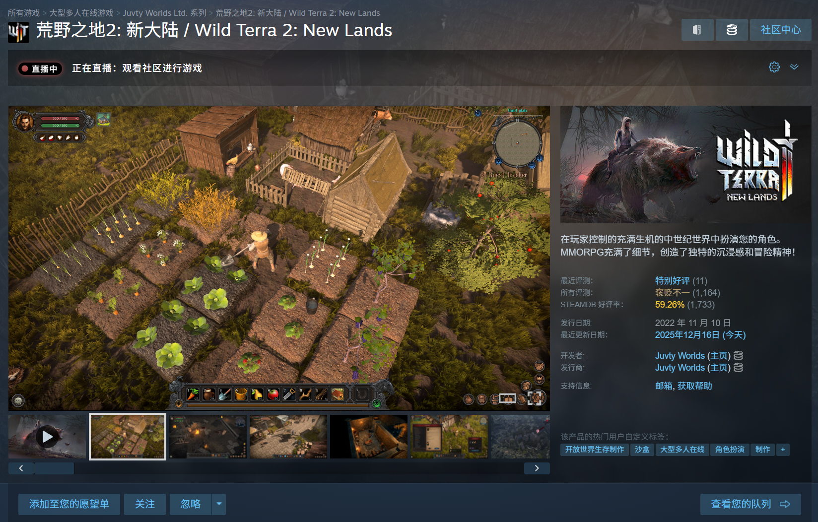 打开steam,搜索游戏的名字「Wild Terra 2: New Lands」,点击添加至账户即可