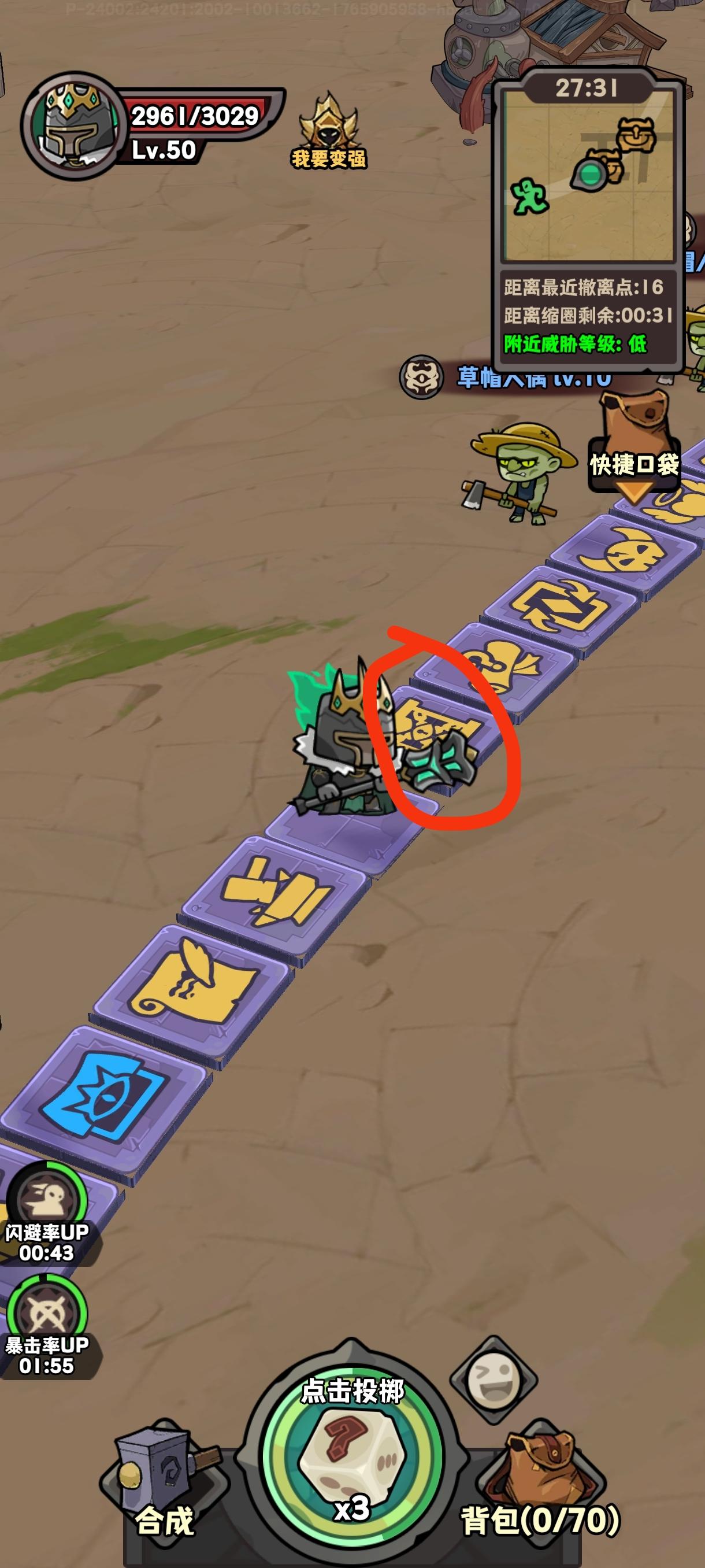 在这期间,遇到图中圈这个监狱格子,是必去的,会刷宝库钥匙和各种金品质以上的物品,摇筛子5以上就会有宝箱(坐牢的话只能说运气不好,就挂机一会而已)