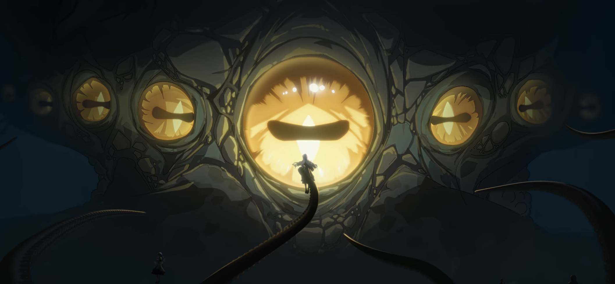 她赌对了。从极致的撕裂感中,一只小水母从微弱的烛光里晃晃悠悠地飞了出来。再抬眼时,黑暗已然褪去,模糊的视线中,是一片五彩斑斓的幻梦。她成功了,却也失败了:她在探索中取胜,成为了新任家主,还护住了其他候选者;可她也失败了——这位命定的圣女终于短暂见到了岁主,却毅然舍弃了属于自己的荣光,只为换取一线生机,最终独留自己,苦守那片无边的幽海。