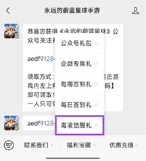 方式①:在公众号后台菜单栏点击【福利宝藏 - 毒液觉醒礼】按钮,快捷进入。