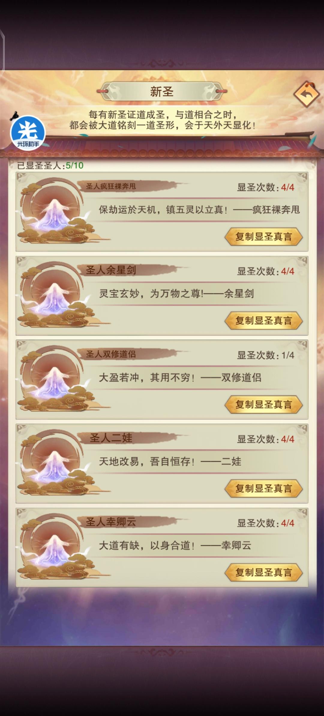 我们区现在有5个圣人,两个都是小号,实际就三个人玩到成圣