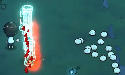 释放间隔,与射击间隔有关,比如上图中的法杖,有4个格子,射击间隔为0.15s,那么释放完一轮法术就需要0.6s。