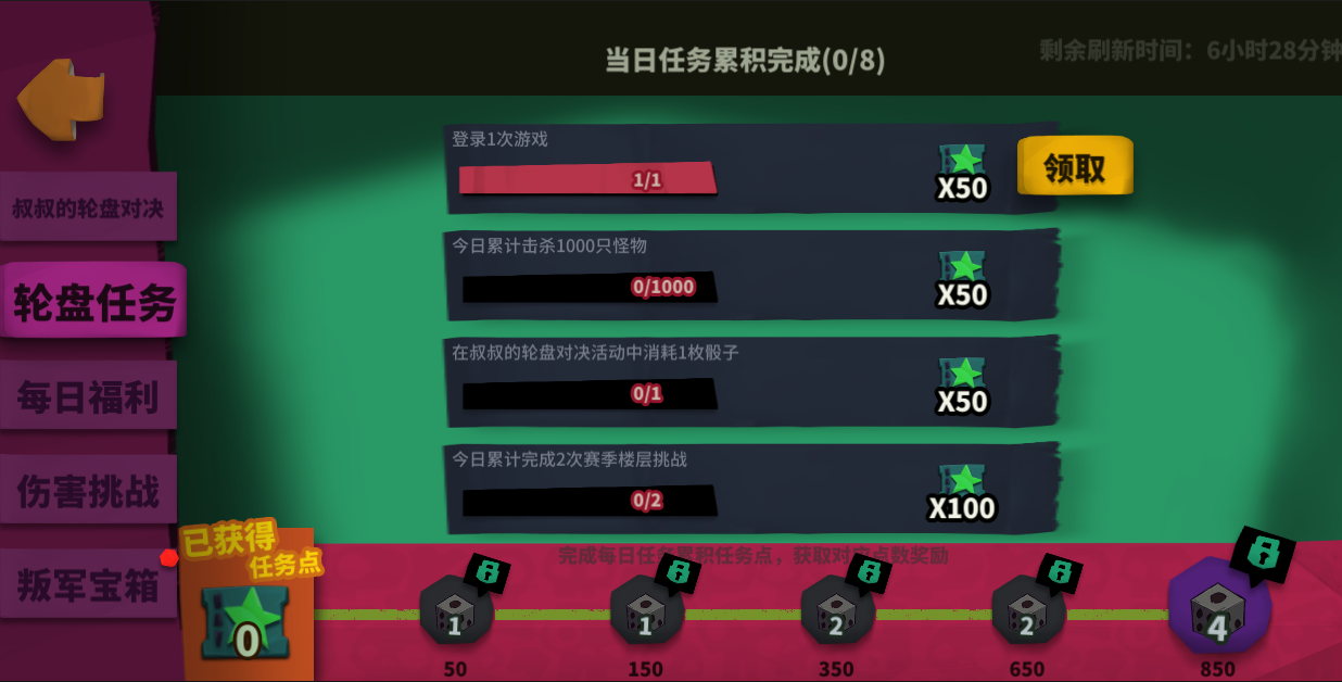 在本次活动中,骑士们需要投掷骰子,根据骰子掷出的点数在轮盘上行动。骰子可通过轮盘任务和礼包获得。(礼包中包含有功能更强的遥控骰子)