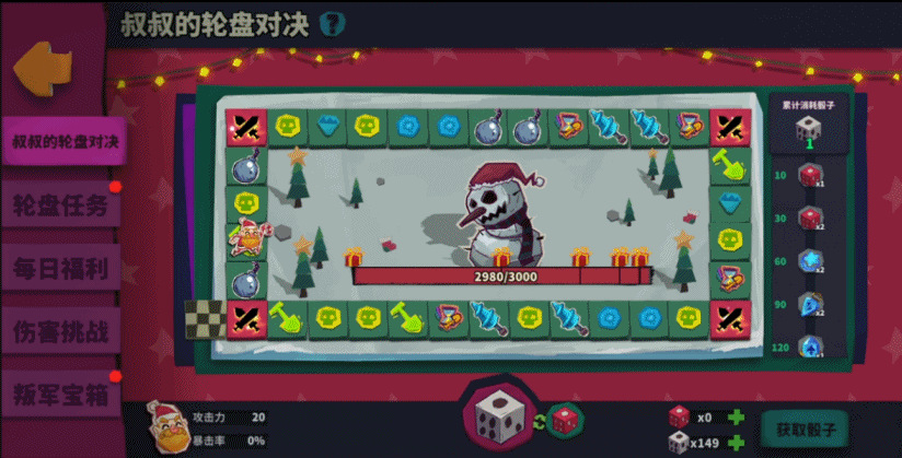 叮叮当,叮叮当~圣诞节即将到来!新活动“叔叔的轮盘对决”已就位,快来和叔叔一起挑战雪人Boss吧!
