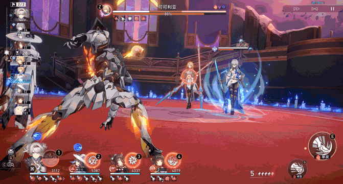 ●进战后大丽花恢复35能量,大招能量130,进战65+35+10(流萤秘技攻击触发追击)=110,即开局A一次即可满能量启动大招循环;