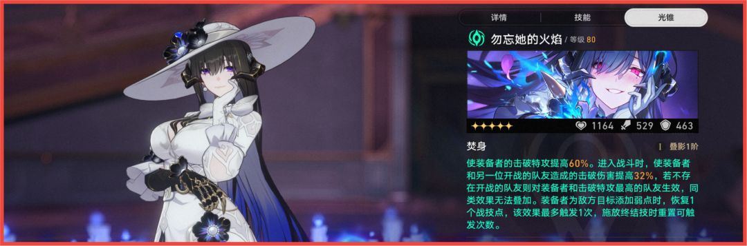 ●稀有的32%独立击破伤害乘区,进一步放大自身及击破C的击破出伤,添加弱点时可恢复战技点;