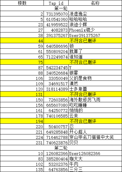 - 出现以下情况的评论,我方有权取消获奖资格和删除留言:同一ID发布多条评论刷楼、发布内容违反TapTap社区规范、发布内容违法违规、盗取或抄袭他人内容。
