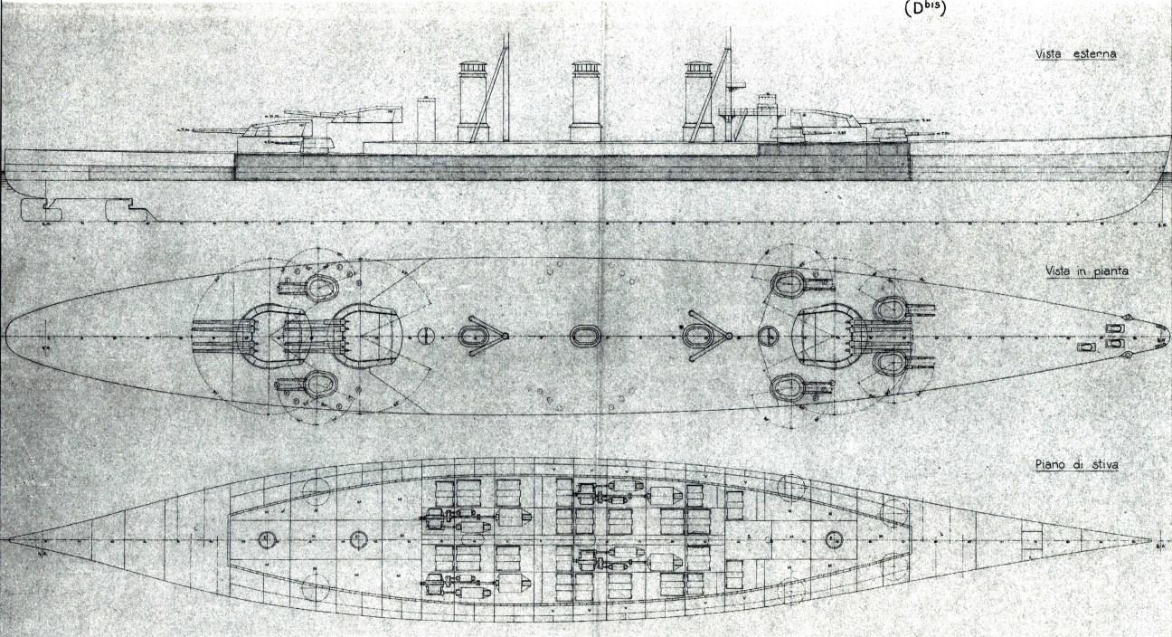 Dbis:与D相同,区别在于主炮塔布置,以及大口径副炮换为六座双联装170mm五十倍径炮。