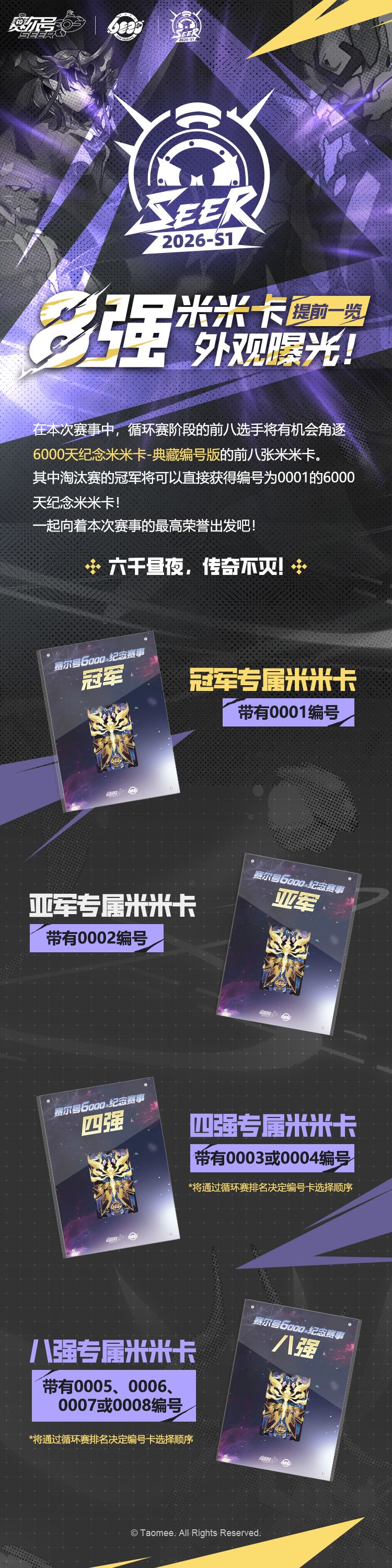 通过预赛晋级循环赛,成功进入八强的小赛尔,除赛事奖励外,还可另外获得专属于八强的专属实物奖励——6000天纪念米米卡·编号典藏版!