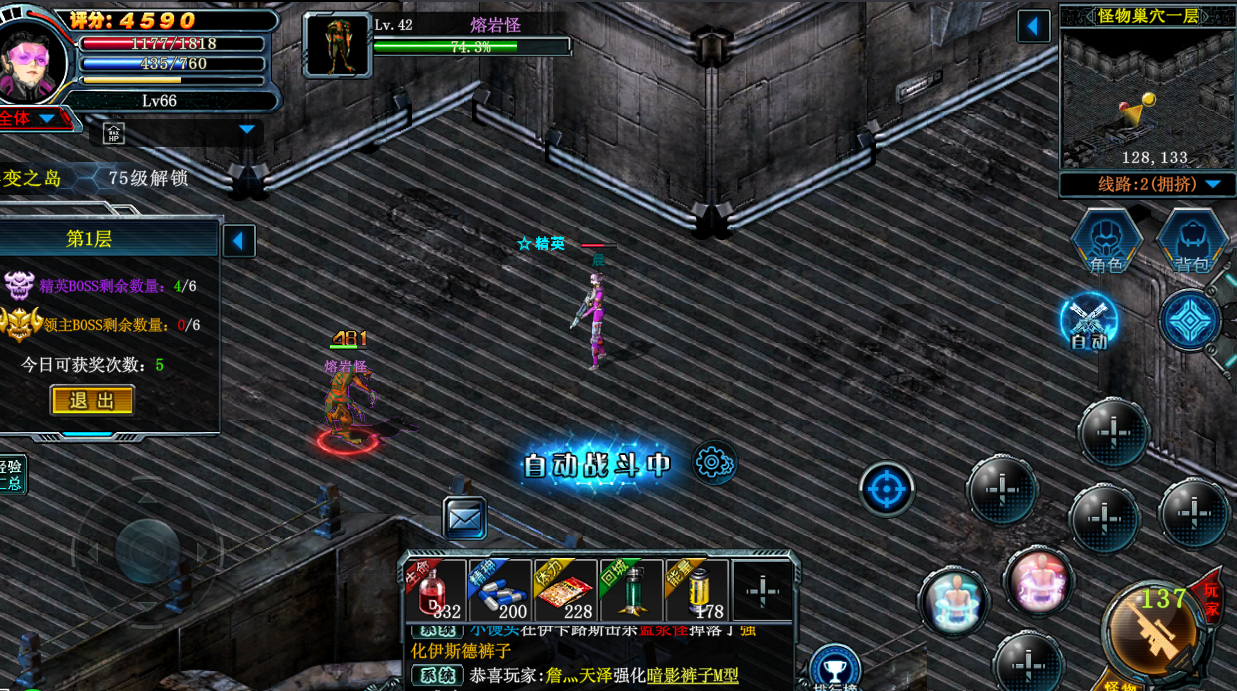- 怪物巢穴每日6次必打,掉紫装,提升战力更能打。