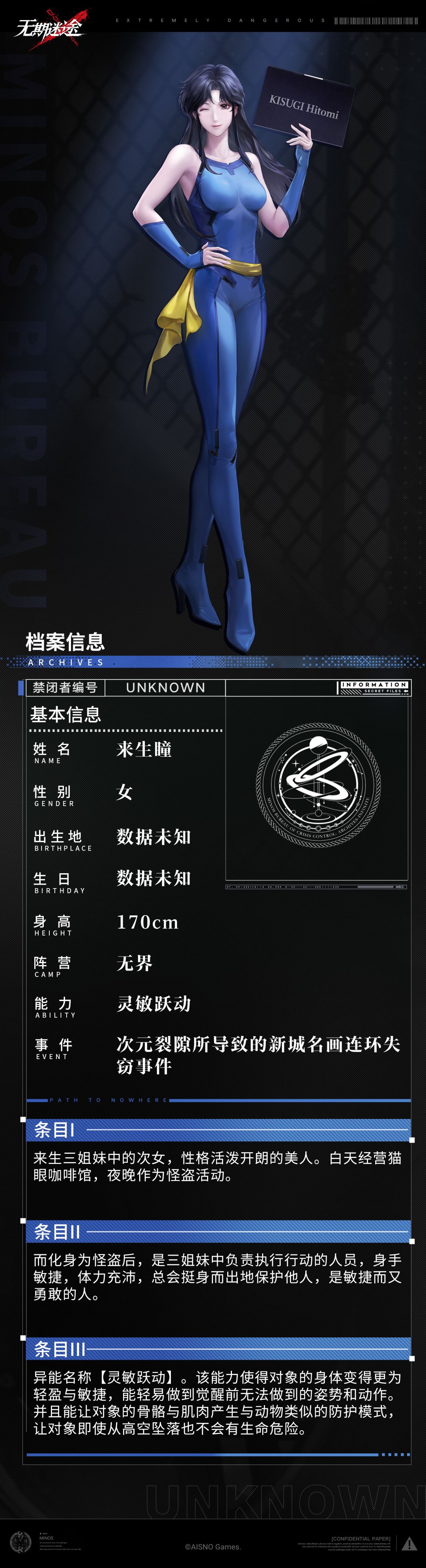 *条目I:来生三姐妹中的次女,性格活泼开朗的美人。白天经营猫眼咖啡馆,夜晚作为怪盗活动。