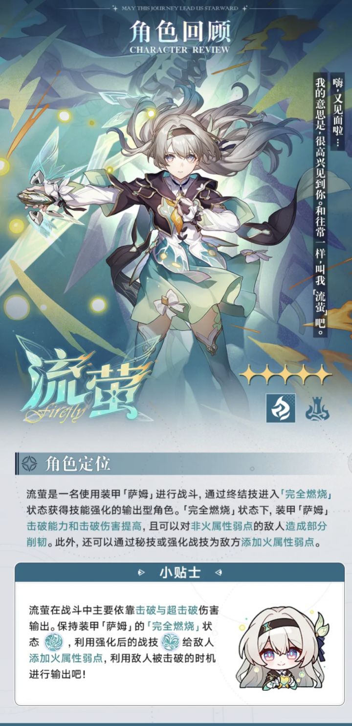 《崩坏:星穹铁道》3.8版本首期卡池(2025/12/17-2026/01/07)推出限定5星角色「大丽花」与「流萤」,二者均为火系输出核心但定位互补:大丽花(虚无)擅长群体灼烧与减益叠加,流萤(毁灭)则聚焦单体爆发与破盾效率。搭配的4星角色中,「加拉赫」(丰饶•火)作为首个火系治疗位,可激活火队共鸣;复刻角色「三月七」(存护•冰)则提供低成本护盾支援,适配新手开荒。