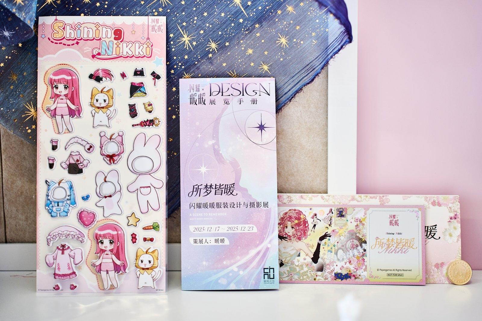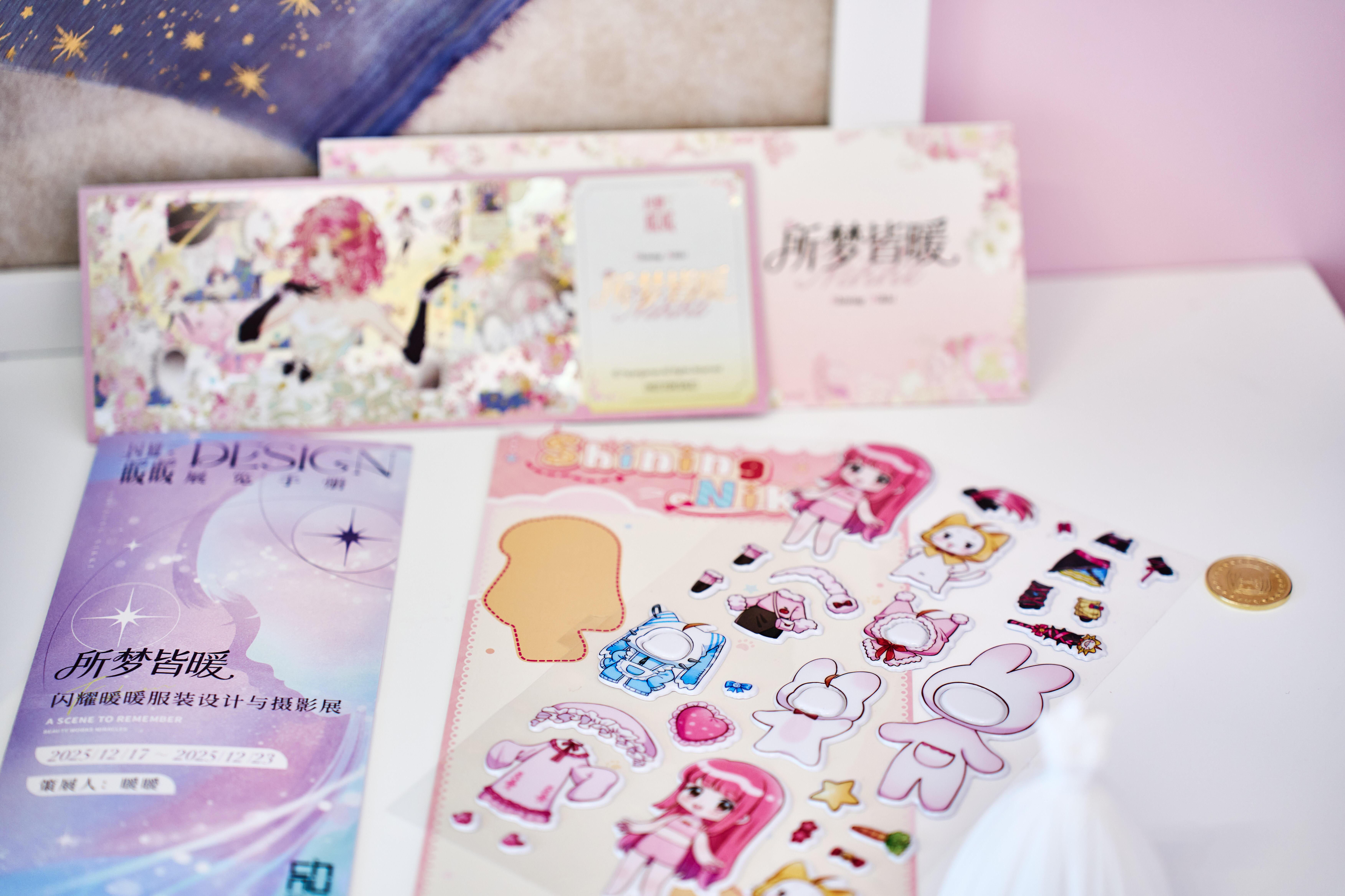 领取展览手册,完成6个盖章,即可兑换【定制换装贴纸1份】,展览手册中还附赠一枚【暖暖金币】哦;