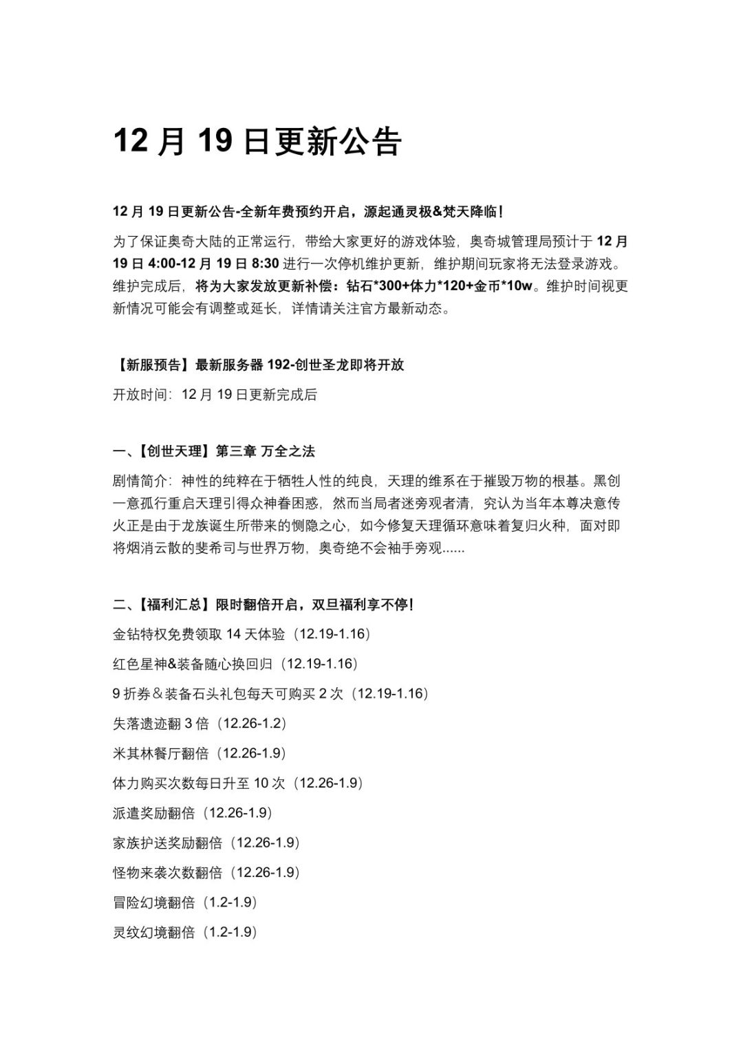 12月19日更新公告-全新年费预约开启,源起通灵极&梵天降临!