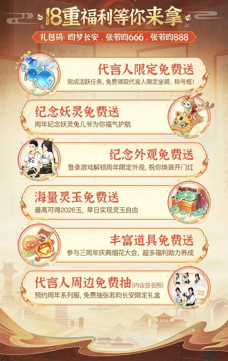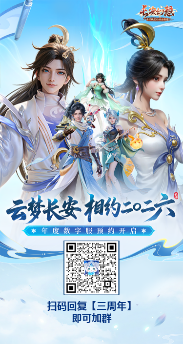 助力三周年数字大服<二〇二六>预约开启,御灵师们分享活动帖并评论留言你的三周年愿望,长安幻想手游官方公众号将随机抽7位幸运御灵师,送上代言人定制周边!