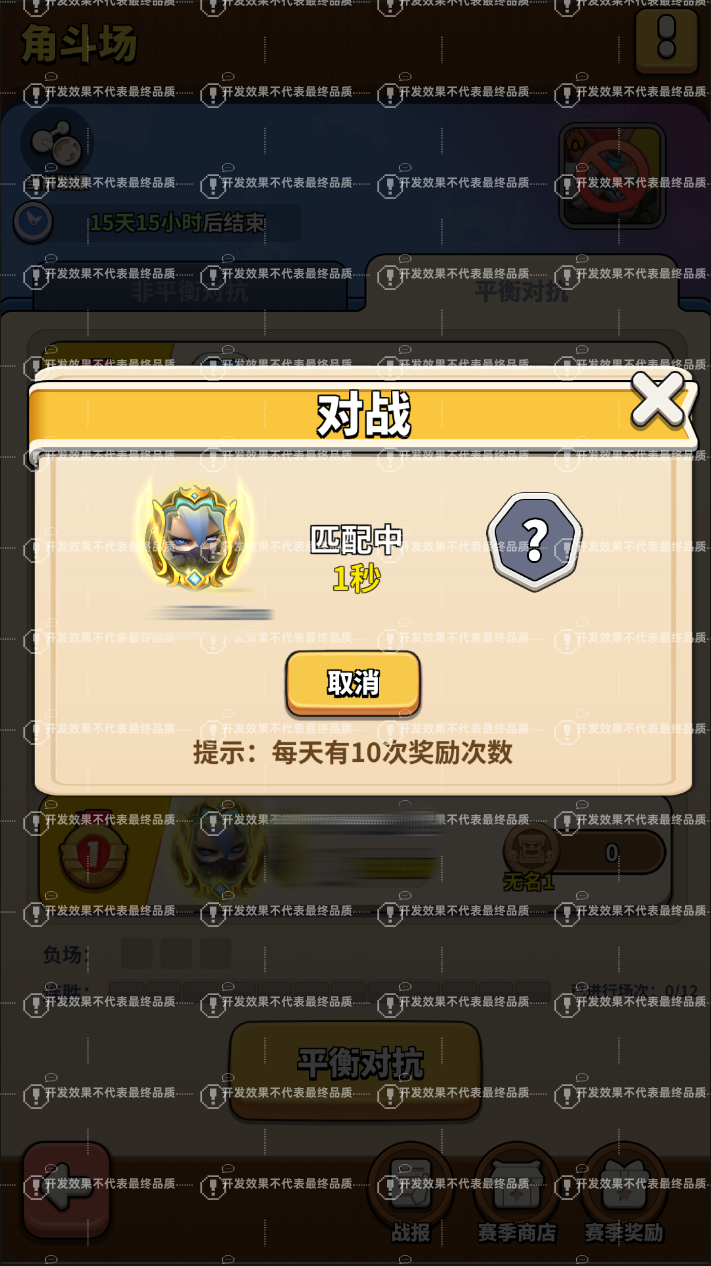 全新PVP玩法。匹配成功后,玩家可以根据卡池阵容进行禁用英雄与选用英雄操作,完成操作后进入布阵阶段并进行战斗。角斗场玩法将带来更深度的策略体验及更丰厚的赛季奖励!角斗场已经进入内部测试阶段,预计将在2026年1月上线!