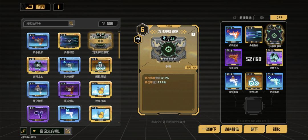 被动的话1和2都可以,武器推荐戏法和伏鸣主堆双爆,戏法带集团卡可以暴击无限子弹