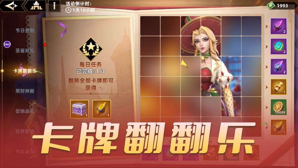 在圣诞派对到来之际,限时开启[限时神殿]、[节日战令]、[卡牌翻翻乐]、[节日签到]等丰富的节日活动!