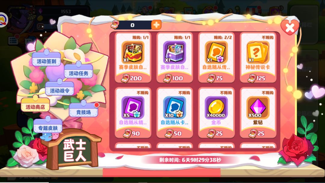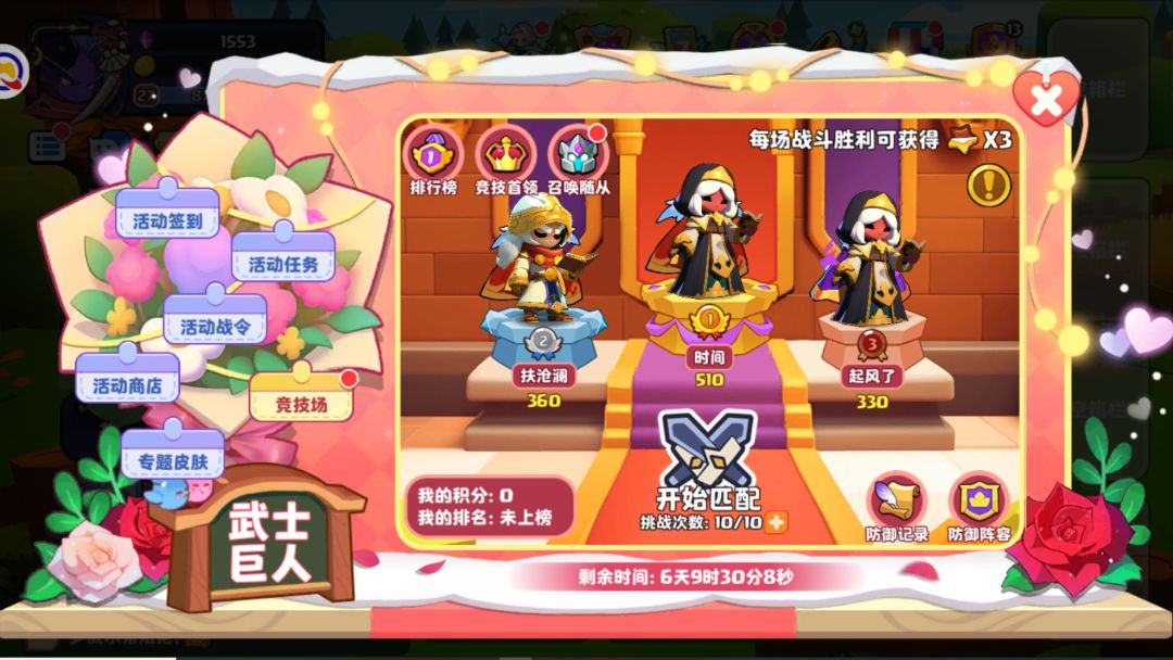 竞技场是我们获得巧克力的主要来源,一天至多可以获得30个巧克力,规则是每天可以随机召唤随从,然后挑选自行挑选,进行战前摆放,放置结束后匹配其他对手摆放的阵容就行啦,不需要用到自己的卡组、也不需要操作,简单有趣~如果活动结束时,在排行榜中排名靠前的话,还可以拿到额外的奖励哦!