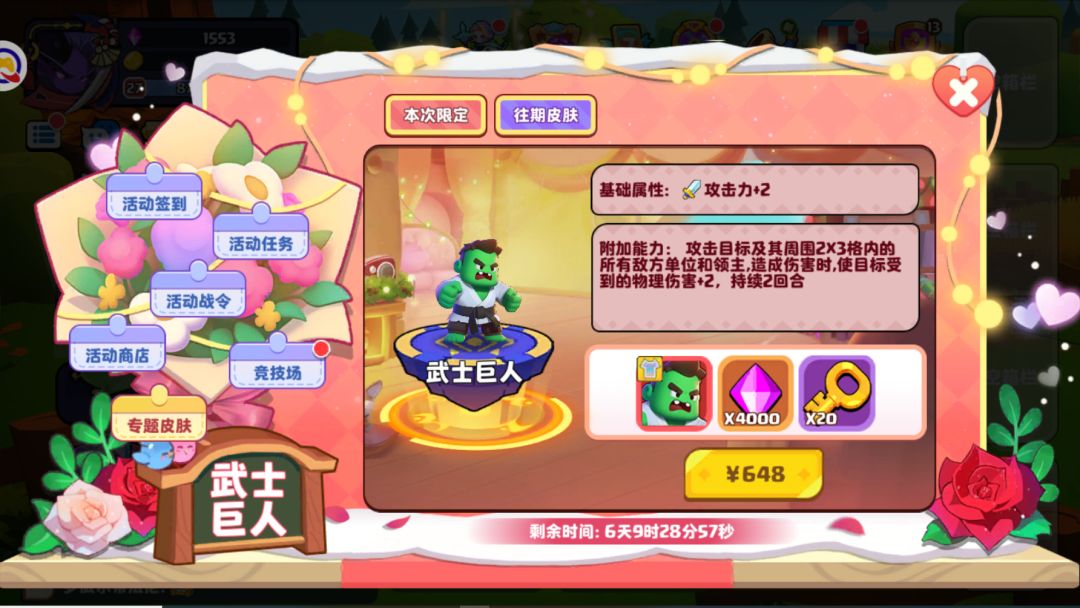 在这个界面,就可以直接购买我们力大无穷的武士巨人啦,凶猛的硬汉也有一颗柔软的心,相信他能给到冒险家想要的一切!同时往期皮肤也同步返场哦~心仪的冒险家可别再错过了!!!
