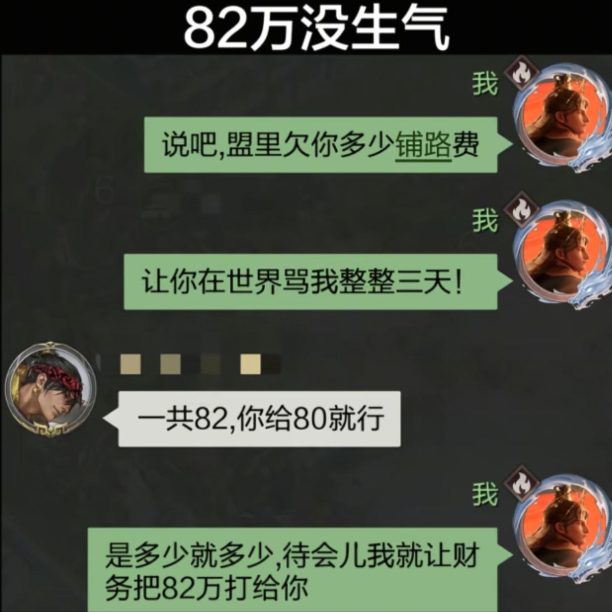 这玩家气不过,在游戏里骂了三天。游戏里的氪金大佬被骂懵了,还真以为欠了80万,赶紧说要给补上。