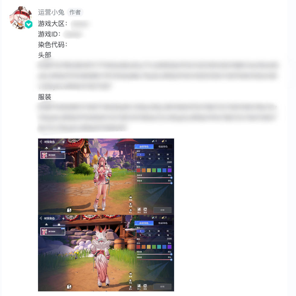 在评论区投稿你的游戏大区、游戏ID以及「雪域风行」系列时装的染色代码(包括:正面图、背面图、头部和服装染色代码),即视为参与成功。*禁止违规刷票等数据造假行为,一经发现将取消评奖资格。