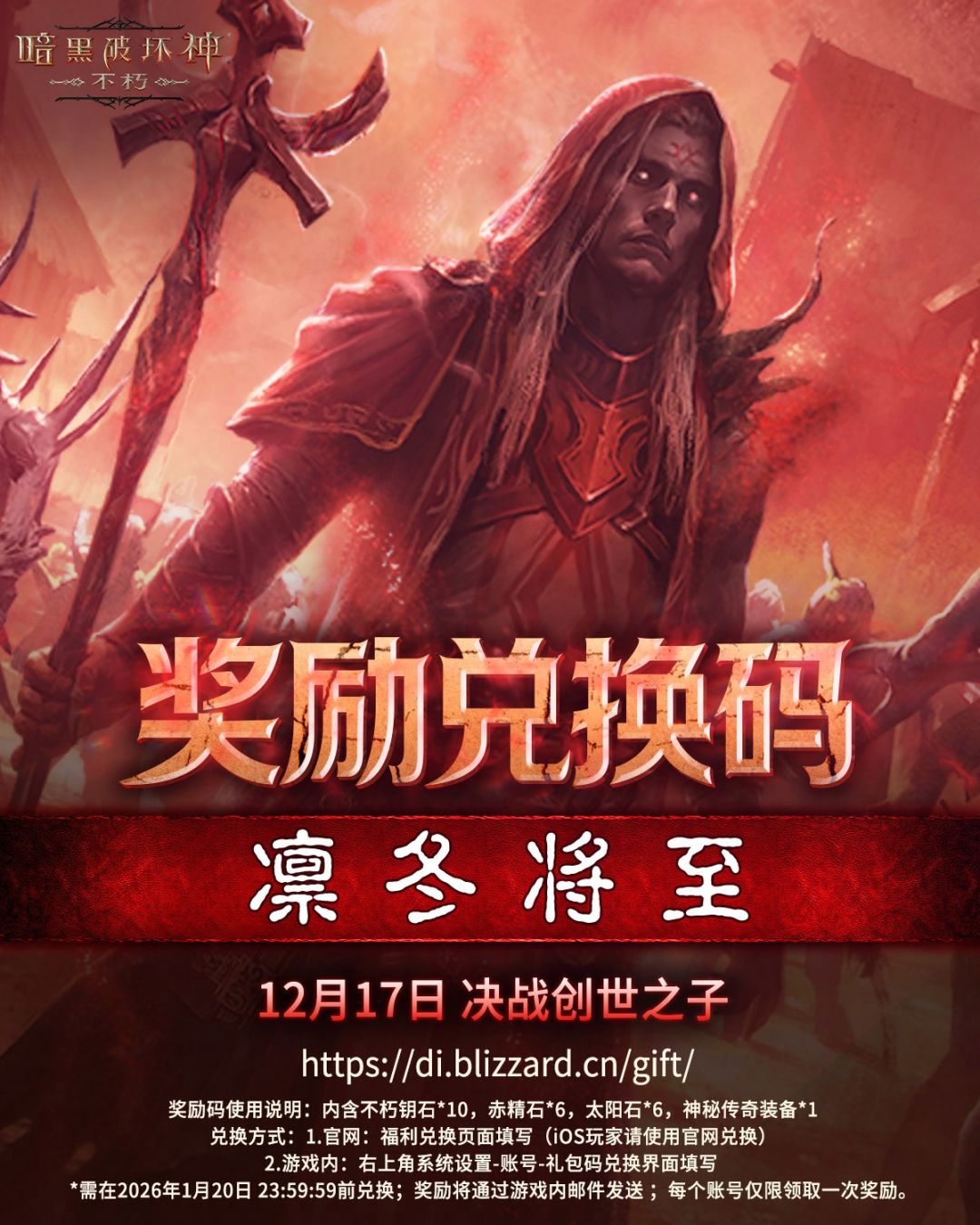 奖励兑换码“凛冬将至”,包含不朽钥石、小宝石和神秘传奇装备,助力你的冒险启航!