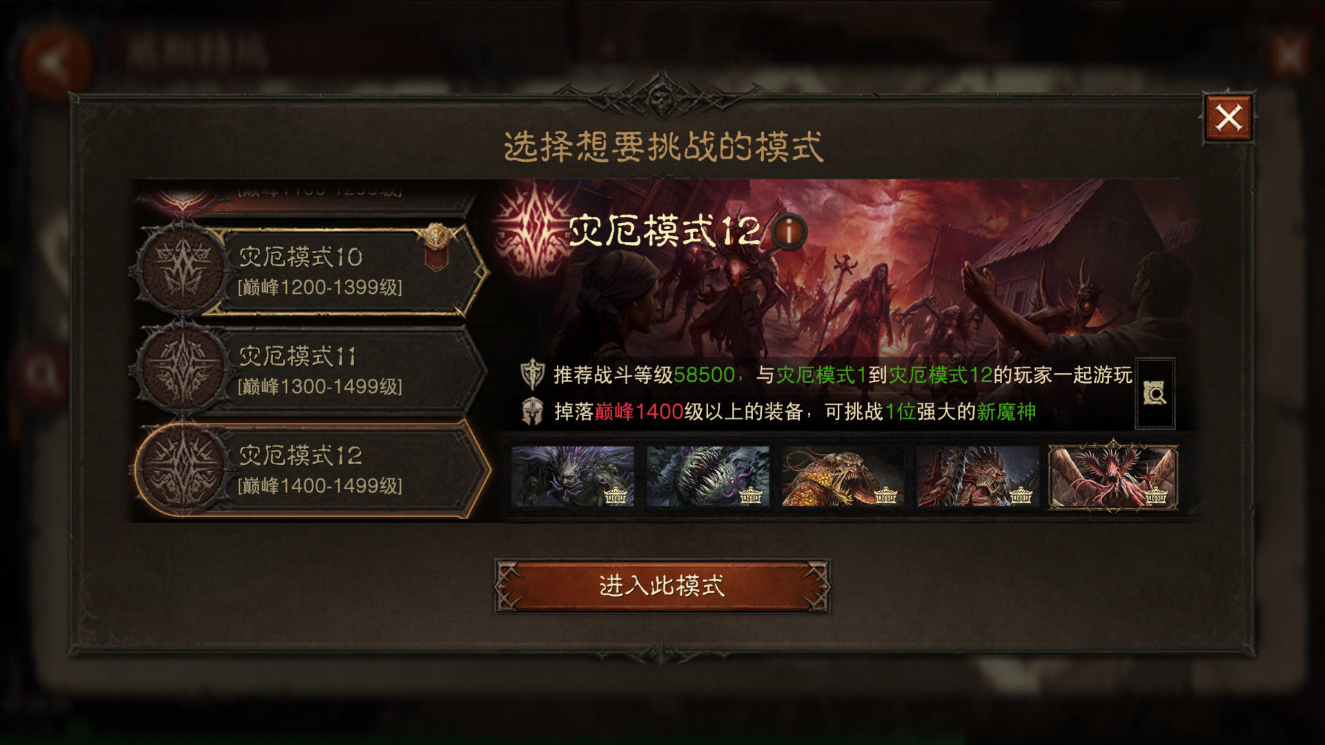 当冒险者进入灾厄模式10后,将为所有职业解锁一套全新的传奇装备、套装“战殇偿还”,以及三个巅峰秘技阵盘特殊技能。