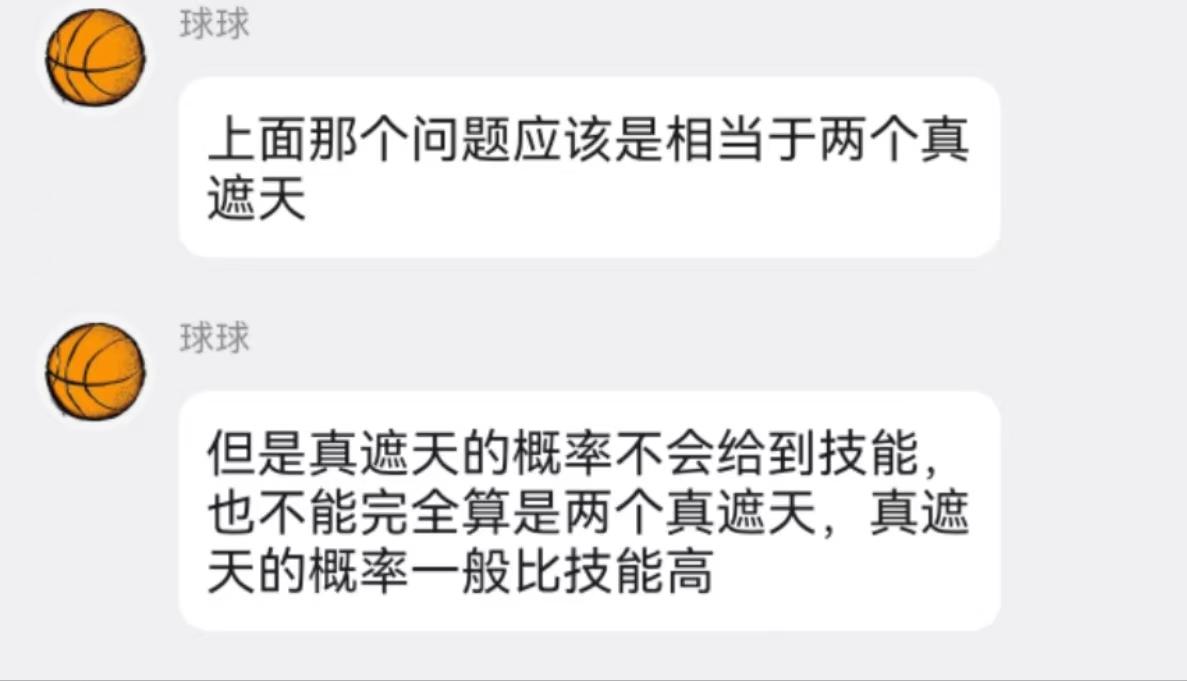 也就是说,两个技能的遮天是合并计算,增加真遮天的效果但概率还是以前技能的概率。真遮天仍然是独立计算。