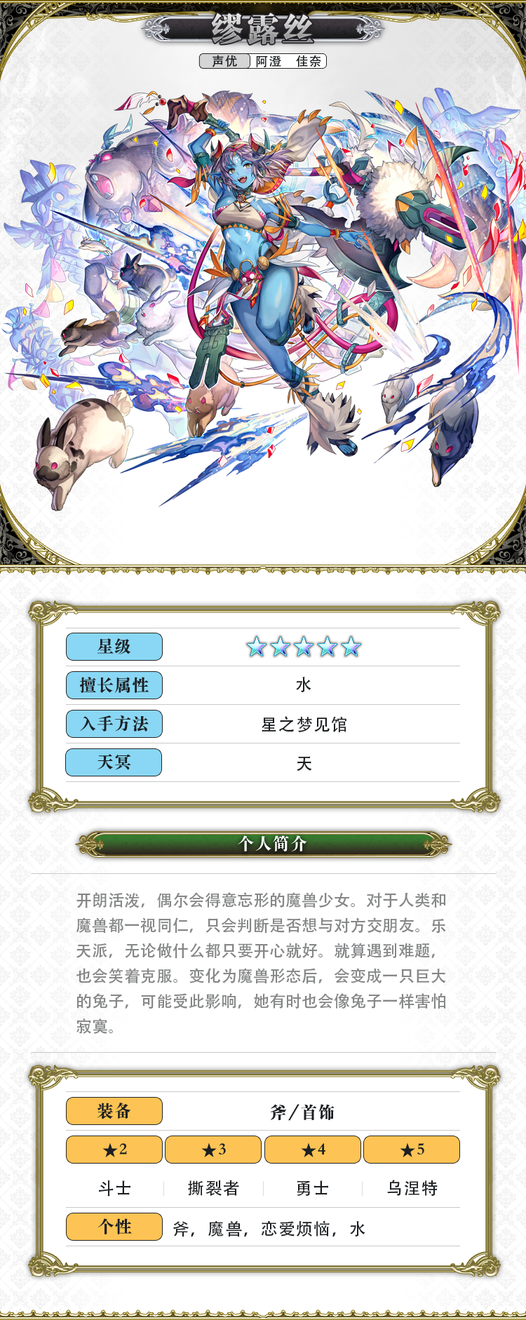 职阶背景:乌涅特(日文:ウェネト,英文:Unut)是古埃及的兔女神,象征着复活的神秘力量。