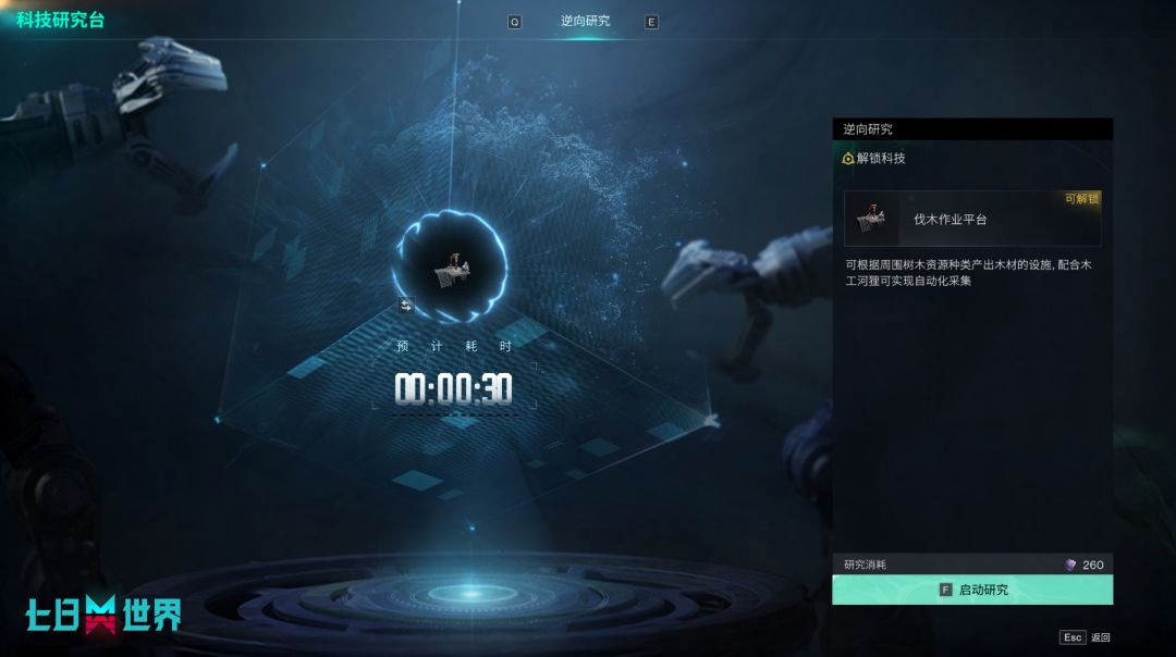 2、要进行逆向研究需要最少三个步骤,首先需要建造一台科技研究台设施(此设施为默认解锁,队友或任何超越者可交互的科技研究台都可以提供逆向研究玩法),其次需要有想要习得配方的成品道具或建筑道具,最后拥有足够数量的晶片,即可开启逆向研究。