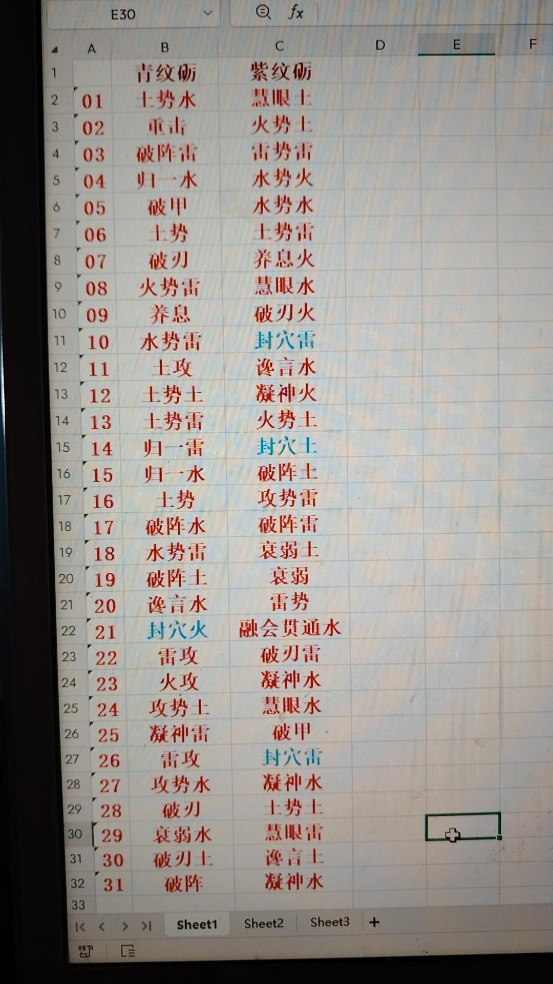 2先离线操作,也就是老油条说的观星,一般用青石紫石虎石随便选一个武器,三个石头都开一遍做好记录,然后选择你需要的就行,换武器同一个石头不会改变出刃顺序,尽量节约材料优先,跳过太多不需要的刃就非常浪费