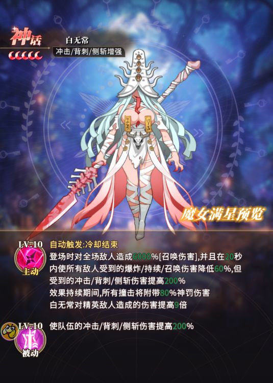白无常是一把双刃剑,尽量控制在【狂热之魂】在场时召唤白无常,将冲击伤害增幅最大化。