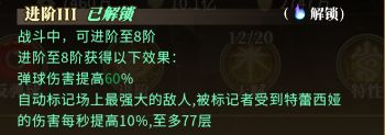 提升特蕾西娅星级,解锁进阶,能提升【异端裁决】伤害,大幅提升恶灵球发射数量,加快【狂热之魂】充能。