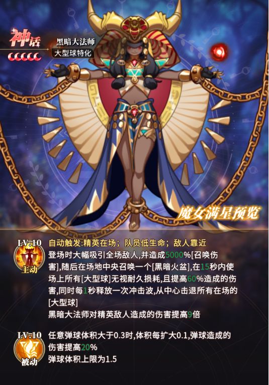进入9阶后,额外召唤一行骑士,但恶灵球发射频率降低50%;从数值来看,12秒内每名骑士发射8枚【恶灵球】,最多能额外发射80枚【恶灵球】