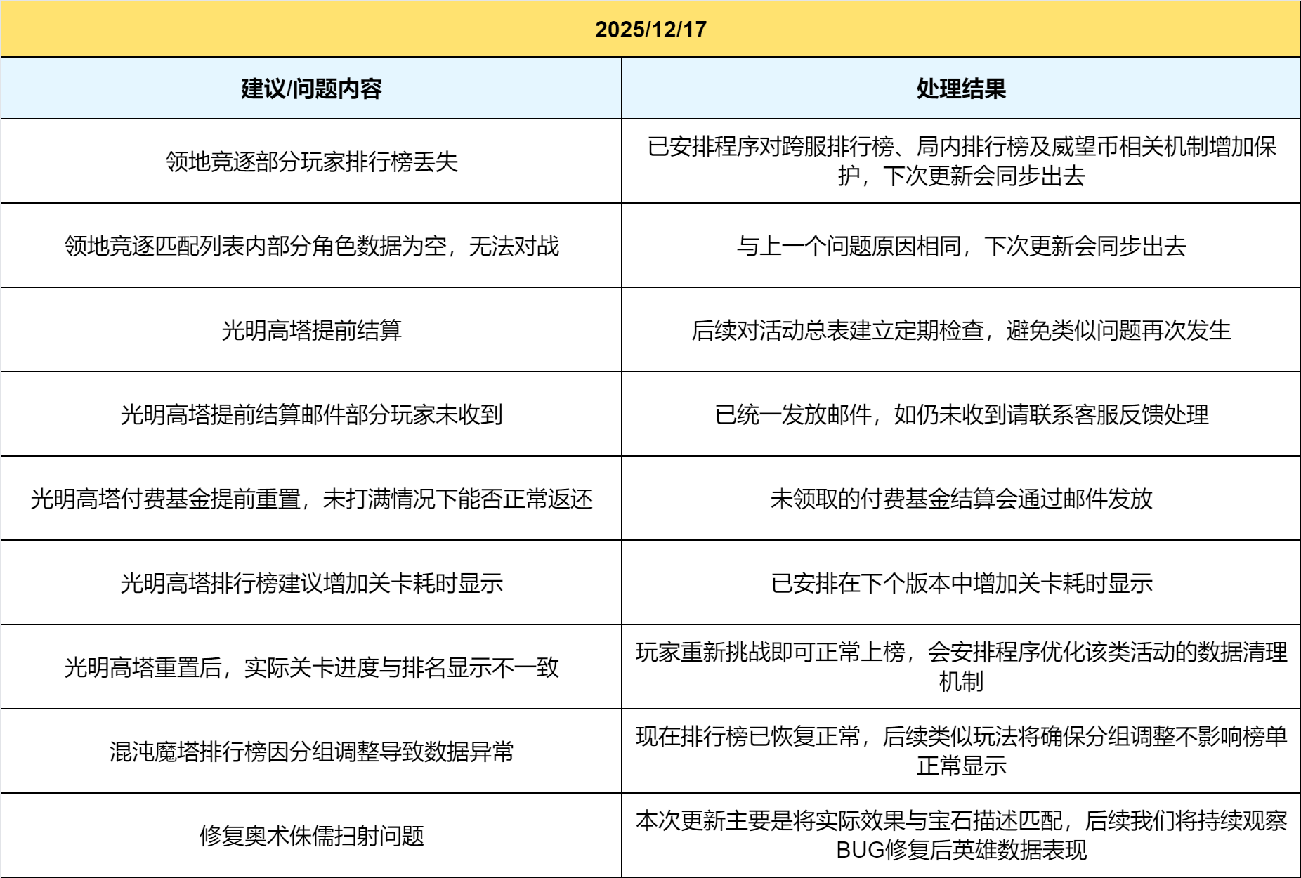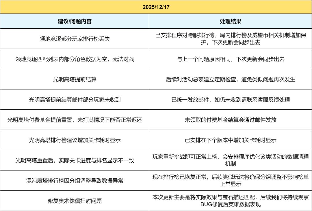 以下是本次更新重点问题的修复进展,部分问题修复方案均将在下次版本更新中实装:
