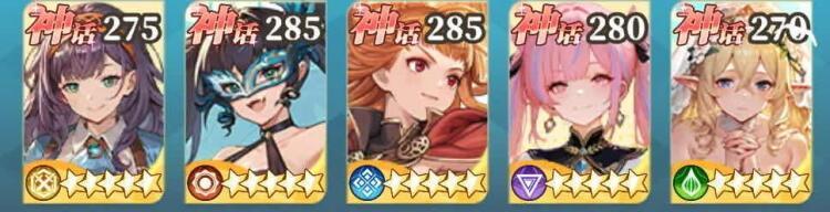 二队主要用于竞技场、海岛,或是神树之旅被限定词条(比如召唤伤害-70%)卡关。