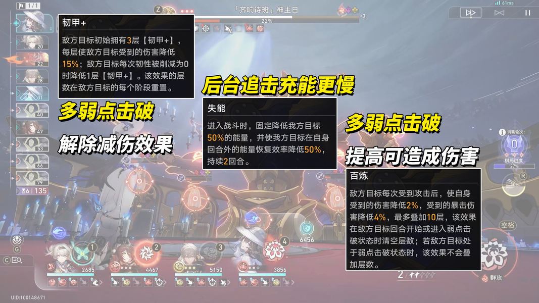 对局神主日没有太多可交互凹细节的点,我方专注削韧叠盾,以及尽可能选择韧性削减强的体系,如击破队或其他弹射类型,打断他阶段三的七回合蓄力。