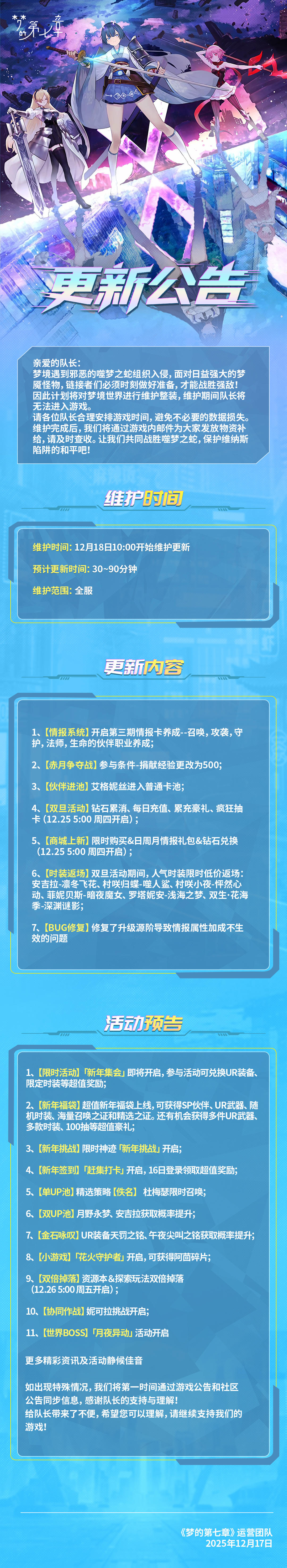 《梦的第七章》12月18日维护公告