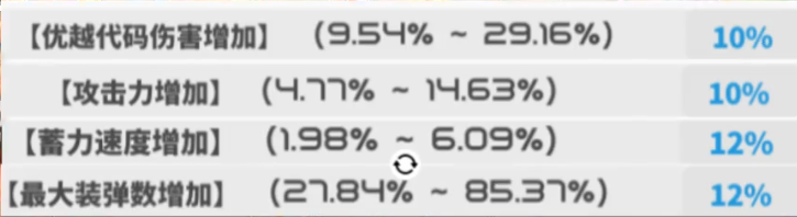 选项中“攻+4”提供了明显的伤害提升,“优越”是提升整体性能的优质词条。在装备的搭配上,可以考虑加入“蓄速”、“暴击”或“装弹”属性,根据实际需求进行取舍。