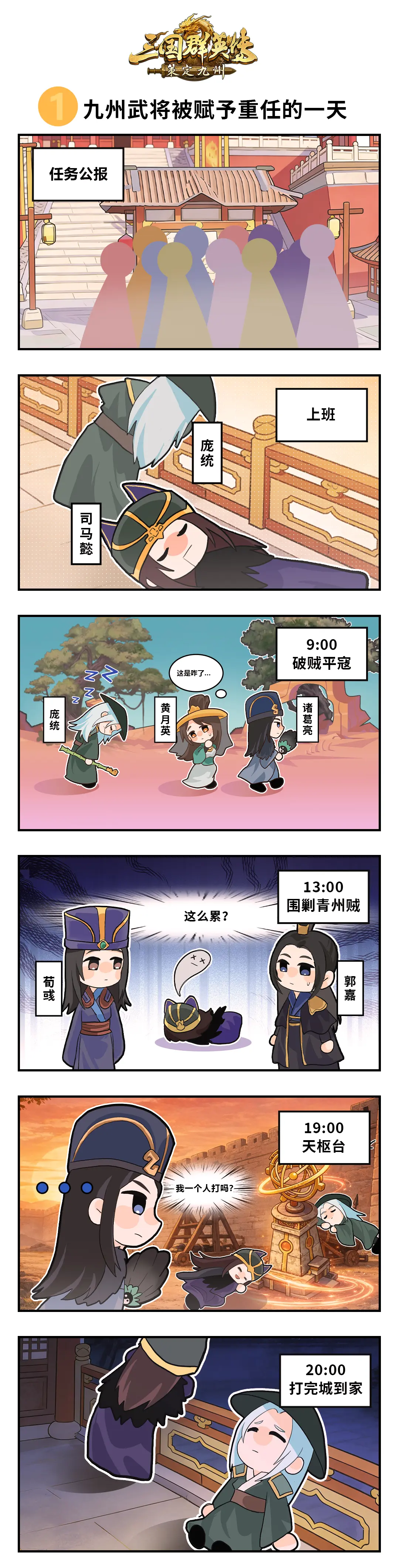 想不到军师的日常竟然如此忙碌!主公是更心疼被公文追着跑的司马懿,还是更佩服面挂素巾、算定一切的庞统呢?快回九州亲自给他们布置任务吧~