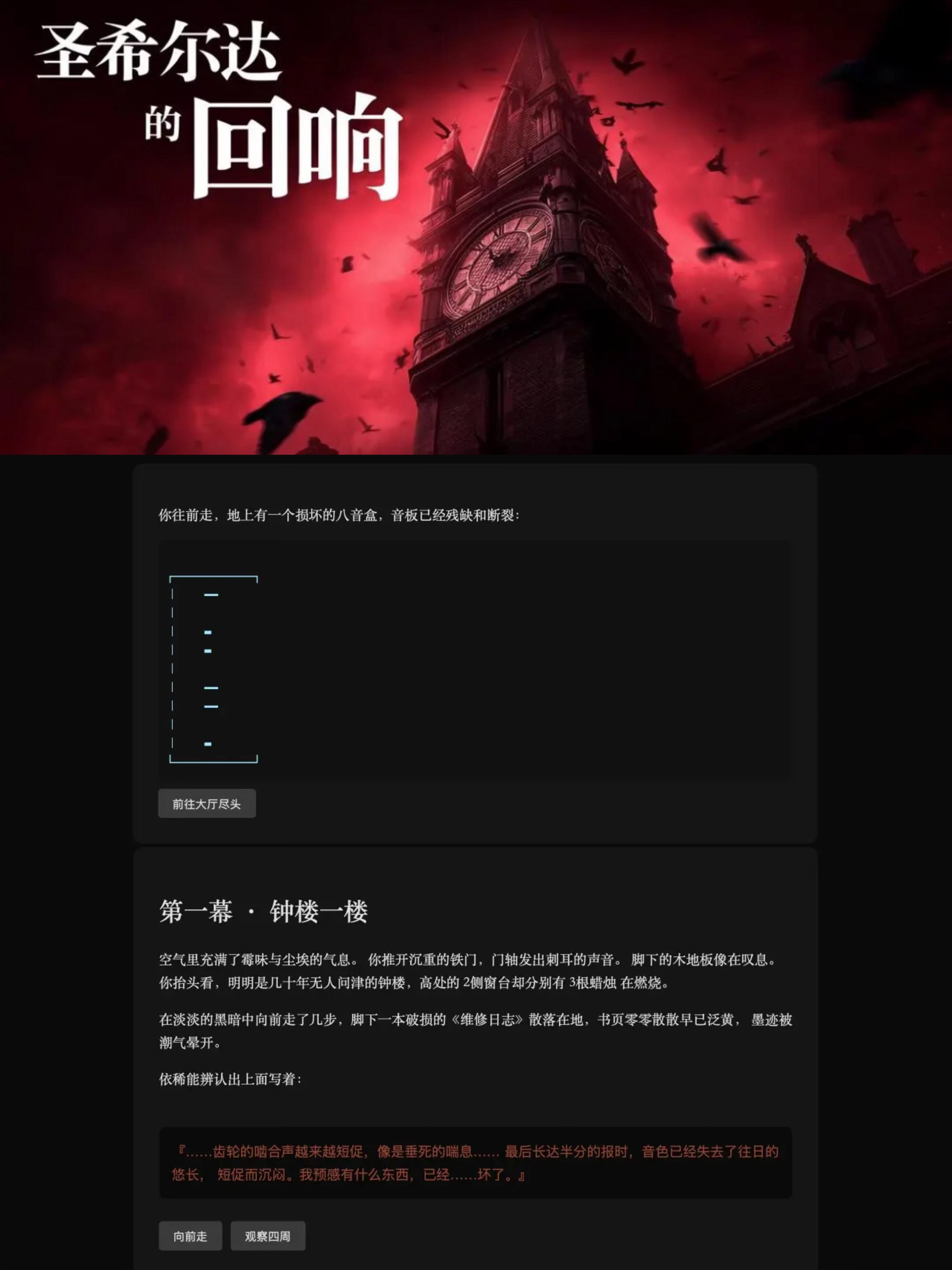 五十年前的一道雷击让一座钟楼的巨钟永远沉寂。今夜,你奉神秘雇主 E.A. 之命,作为修复师踏入这座沉睡半世纪的建筑。每进入更高一层,真相与危险在同时逼近。