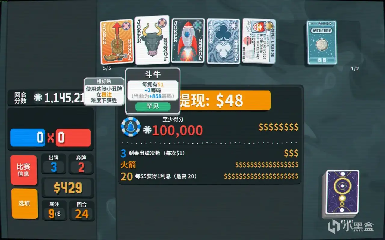 拿了意味着底注一二能非常轻松的度过,打对子即可过关。中间没有好的小丑也可以快速攒钱,中后期也有着非常不错的保障。必拿。